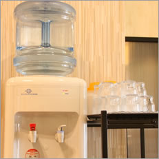 フロントにて受付およびセルフにて一部アメニティお渡し、貸出備品などしております。
